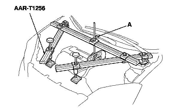 41. Install the A and Reds engine support hanger (AAR-T1256), then attach the hook to the slotted hole in the hanger adapter. Tighten the wing nut (A) by hand to lift and support the engine/transmission assembly.