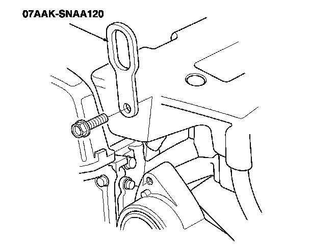 52. Install the transmission hanger bracket (P/N 21232-RCT-A00) (A) and the washer (B) on the transmission.