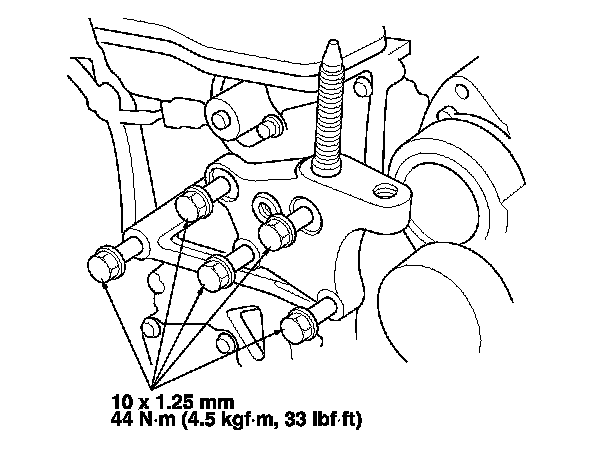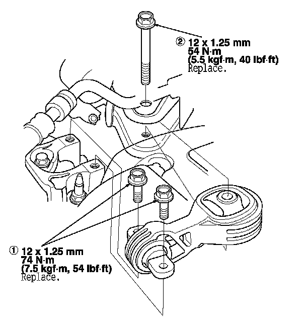 34. Install the upper torque rod, then tighten the new upper torque rod mounting bolts in the numbered sequence shown.