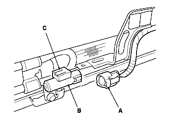 Lift the tab (C) to release the lock, then remove the outside air temperature sensor from the front bumper.