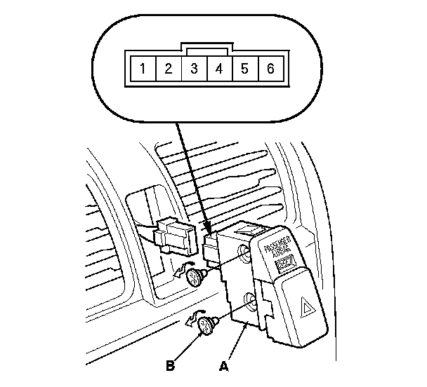 hazard warning switch (A), and disconnect the 6P connector from the switch.