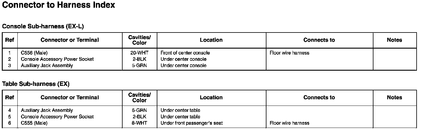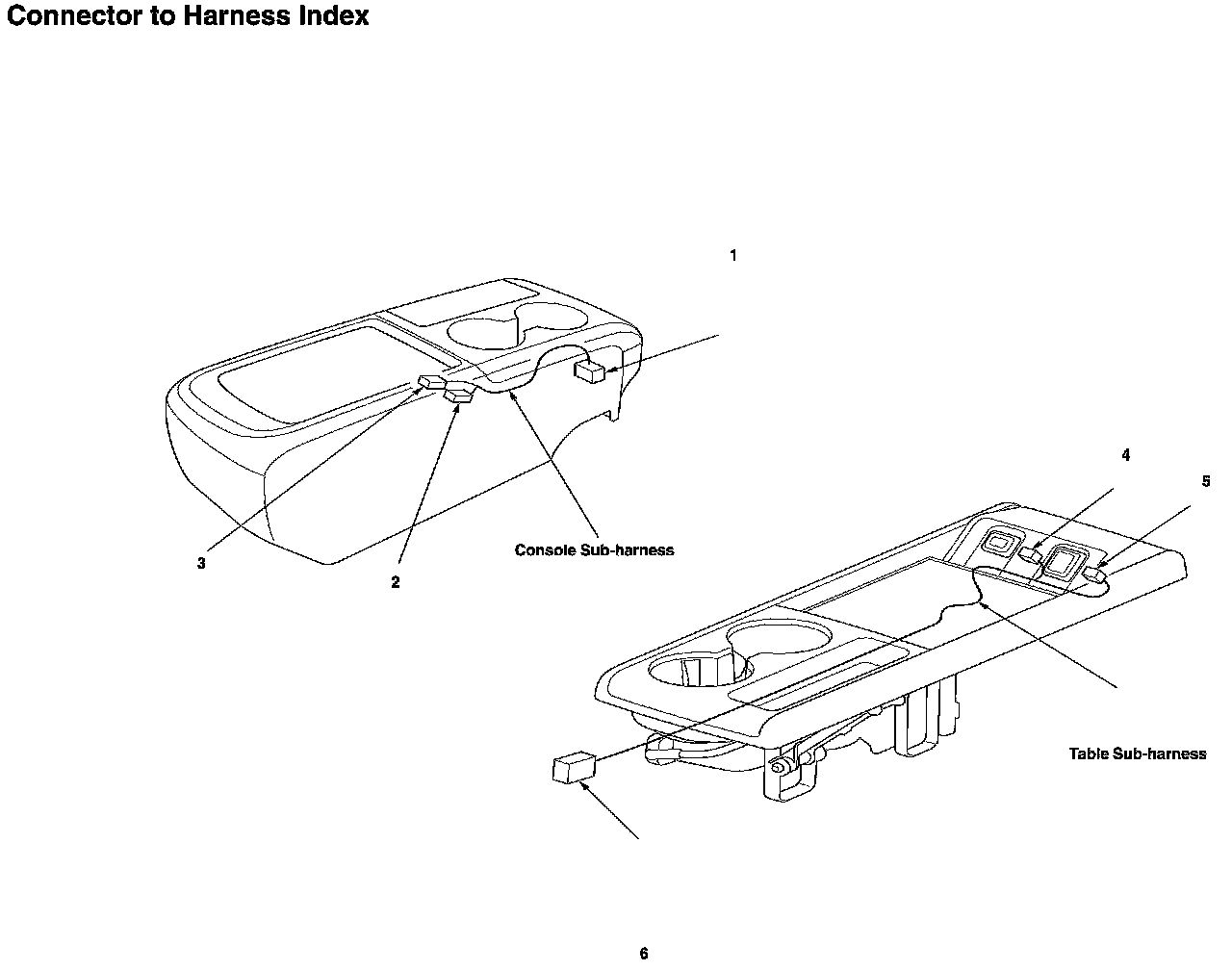 Console Sub-harness And Table Sub-harness Connector And Harness Locations