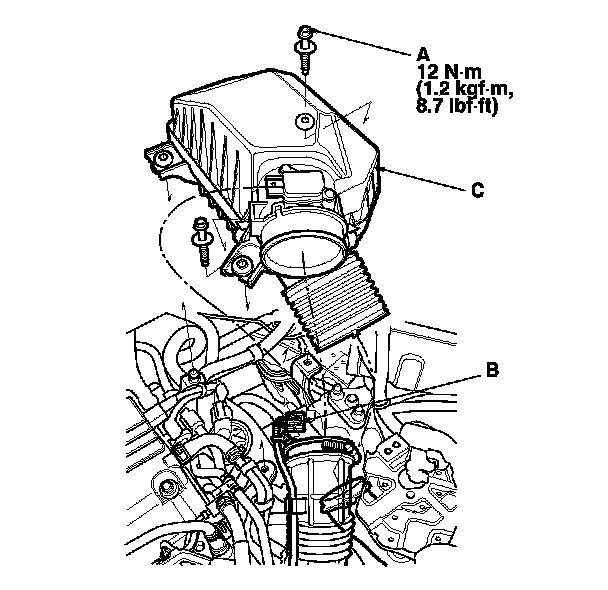 Disconnect the MAF sensor/IAT sensor connector (B).