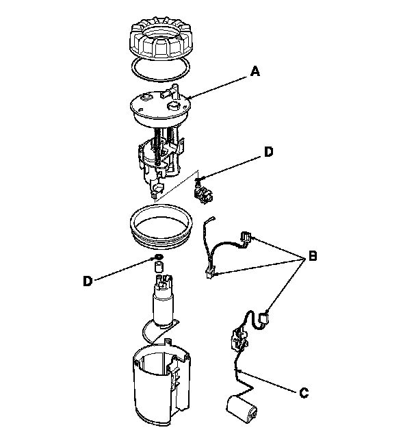 - When installing the fuel gauge sending unit (C), make sure the connection is secure and the connector is firmly locked into place. Be careful not to bend or twist it excessively.