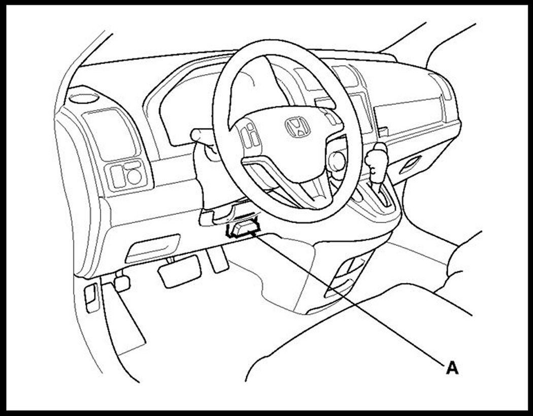 1. With the ignition switch in LOCK (0), connect the HDS to the data link connector (DLC) (A) located under the driver's side of the dashboard.
