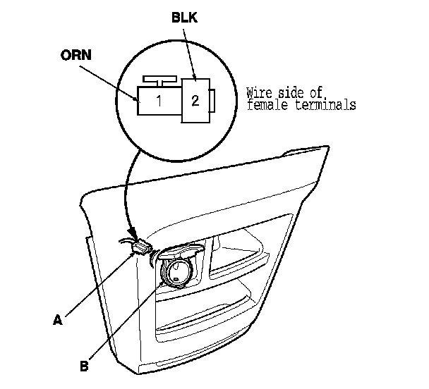 2. Disconnect the 2P connector (A) from the front accessory power socket (B).