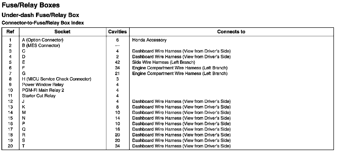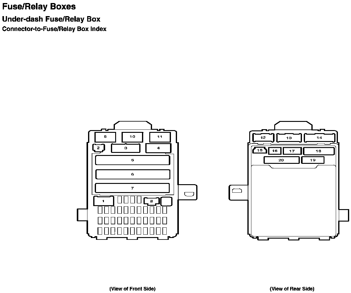 Under-dash Fuse/Relay Box - Connector-to-Fuse/Relay Box Index