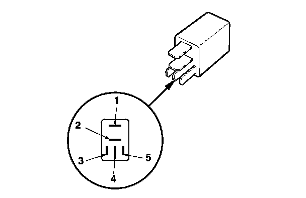 - There should be continuity between terminals No. 1 and No. 2 when battery positive terminal is connected to terminal No. 5, and battery negative terminal is connected to terminal No. 3.