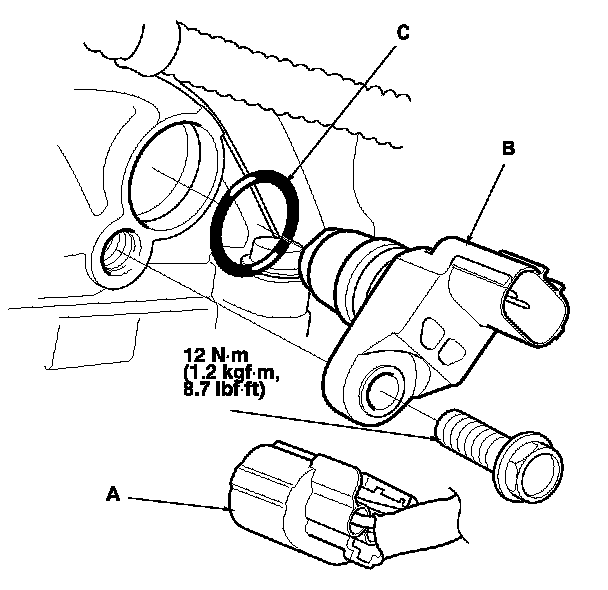 Install the parts in the reverse order of removal with a new O-ring (C).