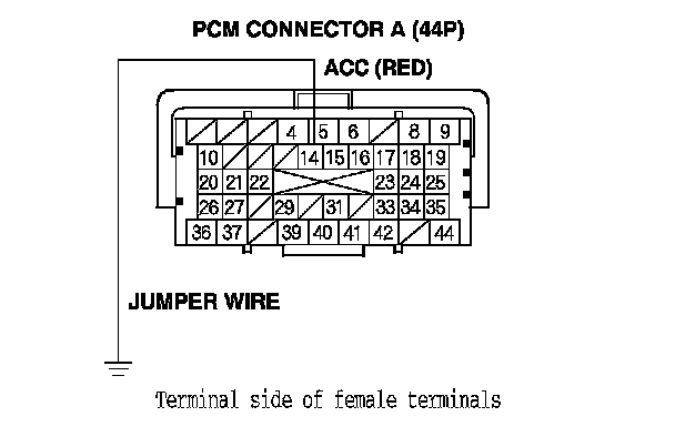 13. Momentarily connect PCM connector terminal A14 to body ground with a jumper wire several times.