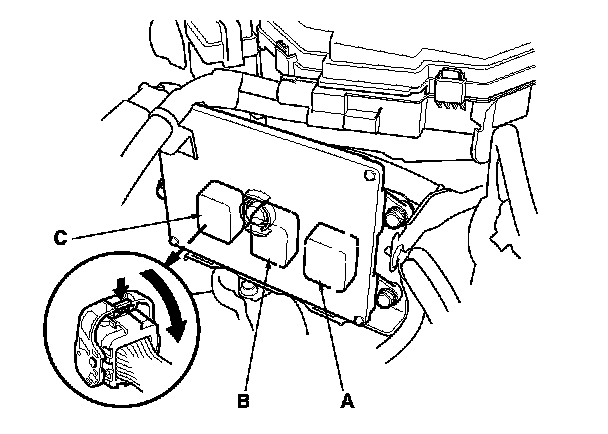 5. Disconnect PCM connectors A, B, and C.
