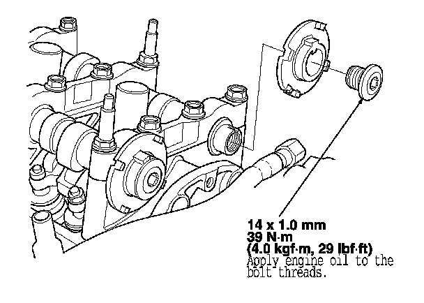 3. Hold the camshaft with an open-end wrench, then loosen the bolt.