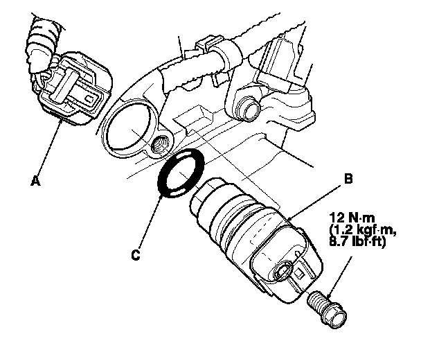 4. Install the parts in the reverse order of removal with a new O-ring (C).