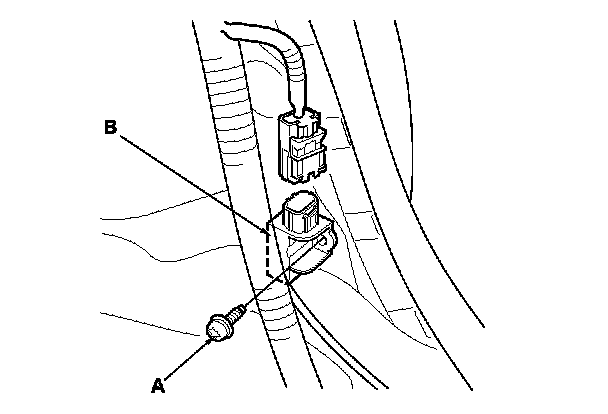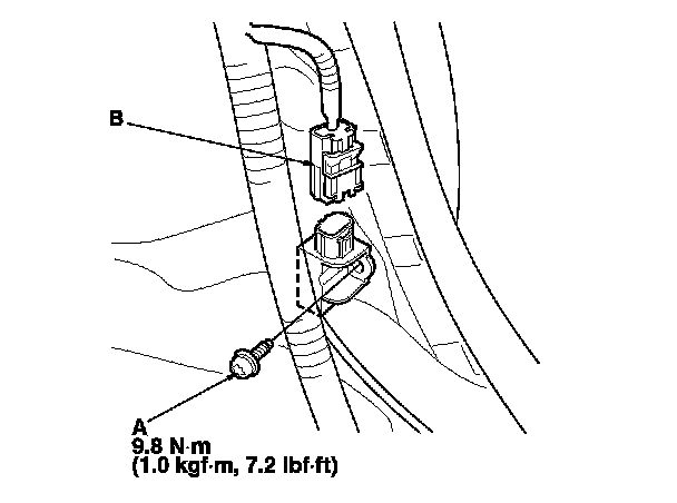 1. Install the new side impact sensor (second) with the TORX bolt (A), then connect floor wire harness 2P connector (B) to the side impact sensor (second).