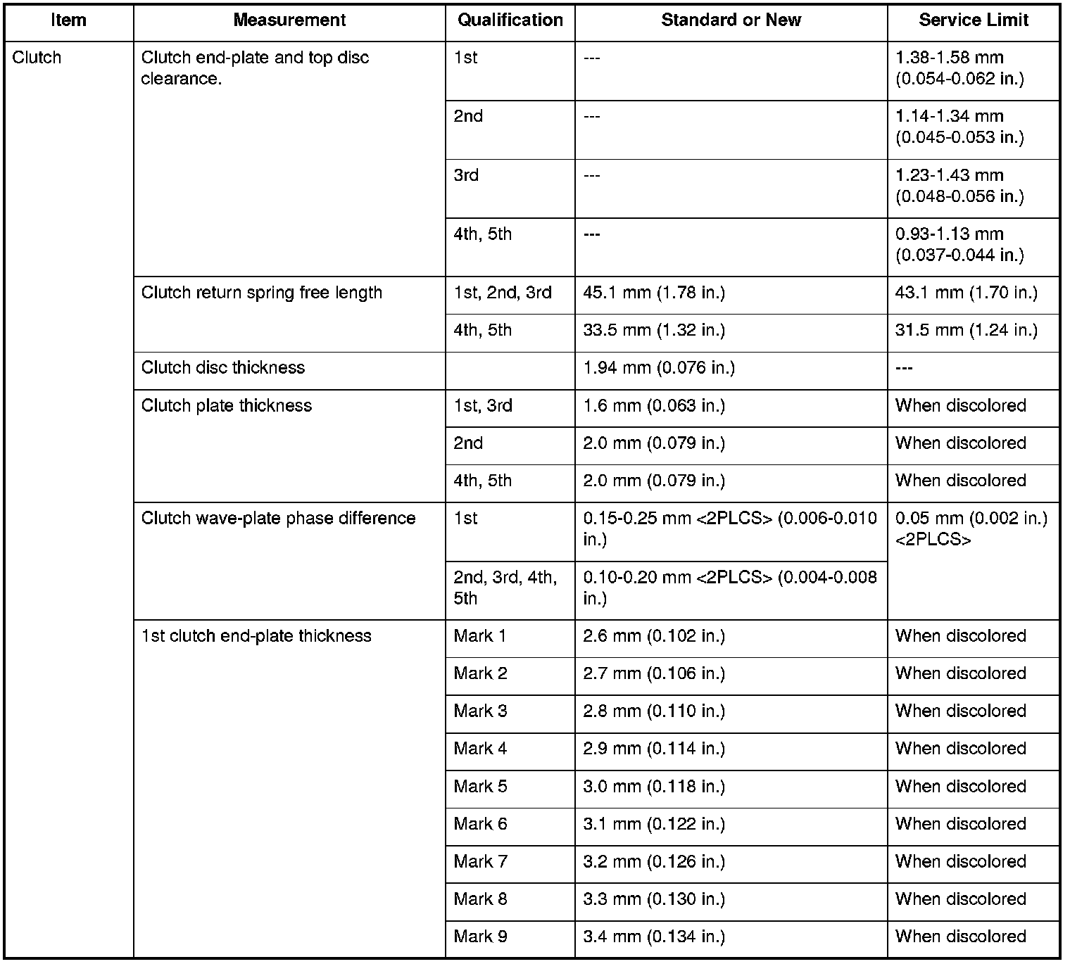 Clutch Specifications