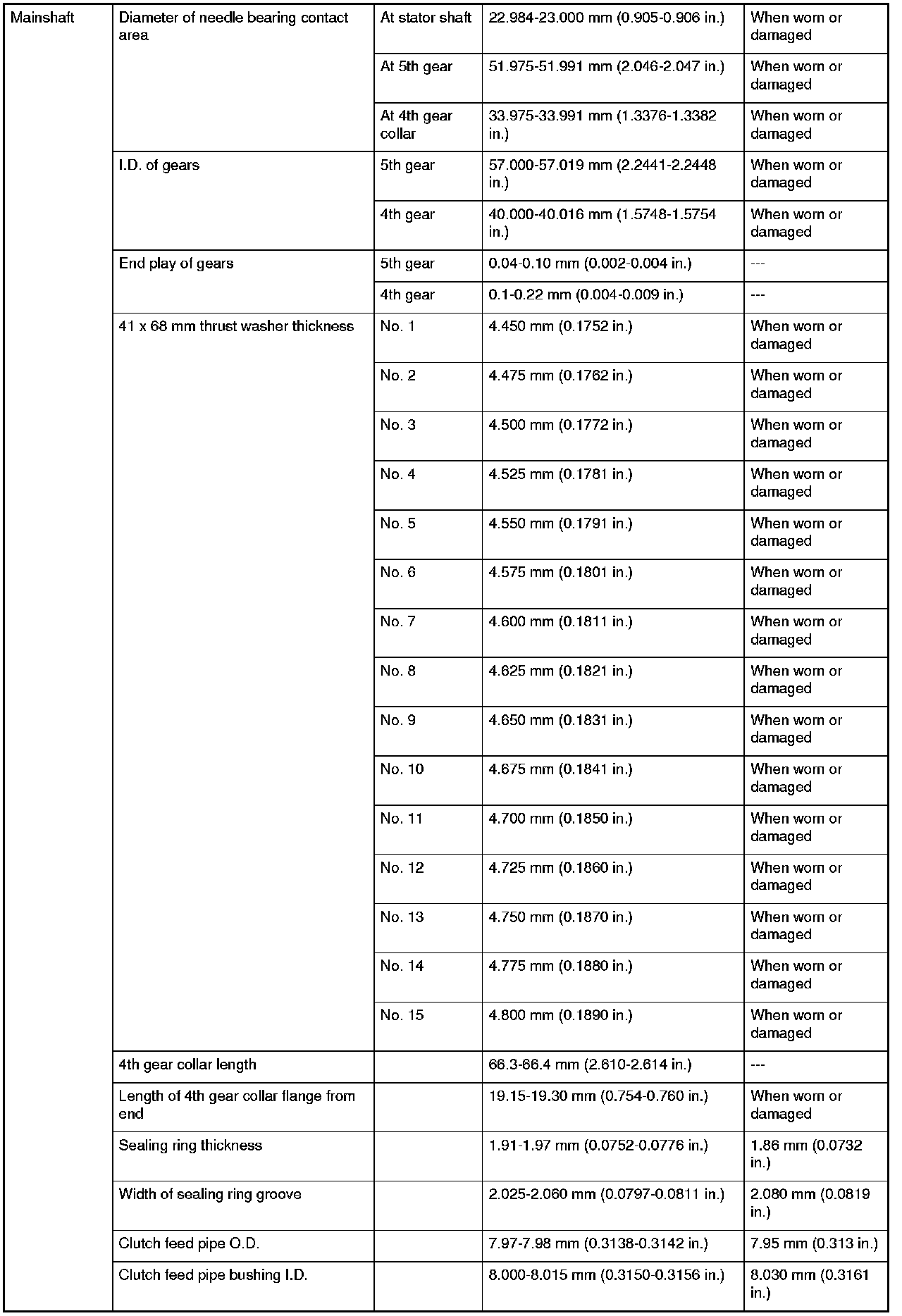 Mainshaft Specifications