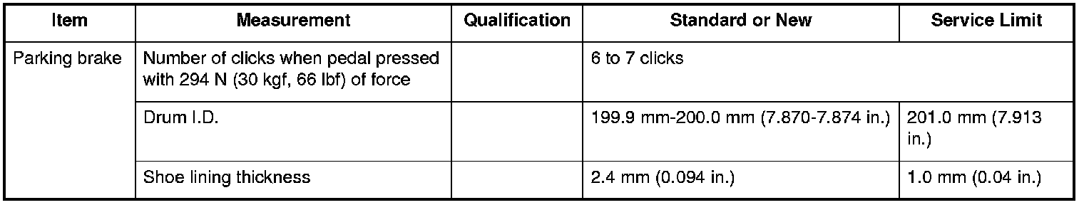Parking Brake Specifications