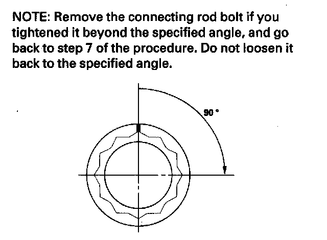 After torquing, tighten all cylinder head bolts in two steps (90° per step). If you are using a new cylinder head bolt, tighten the bolt an extra 90°.
