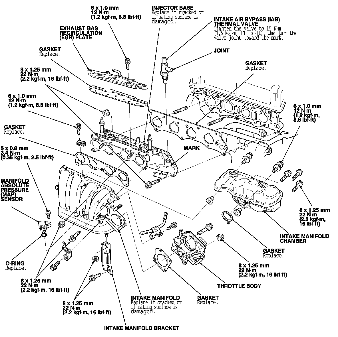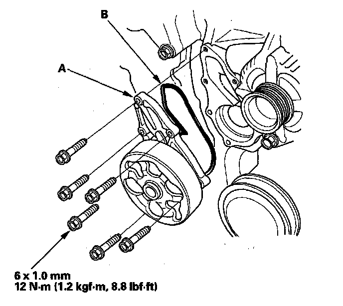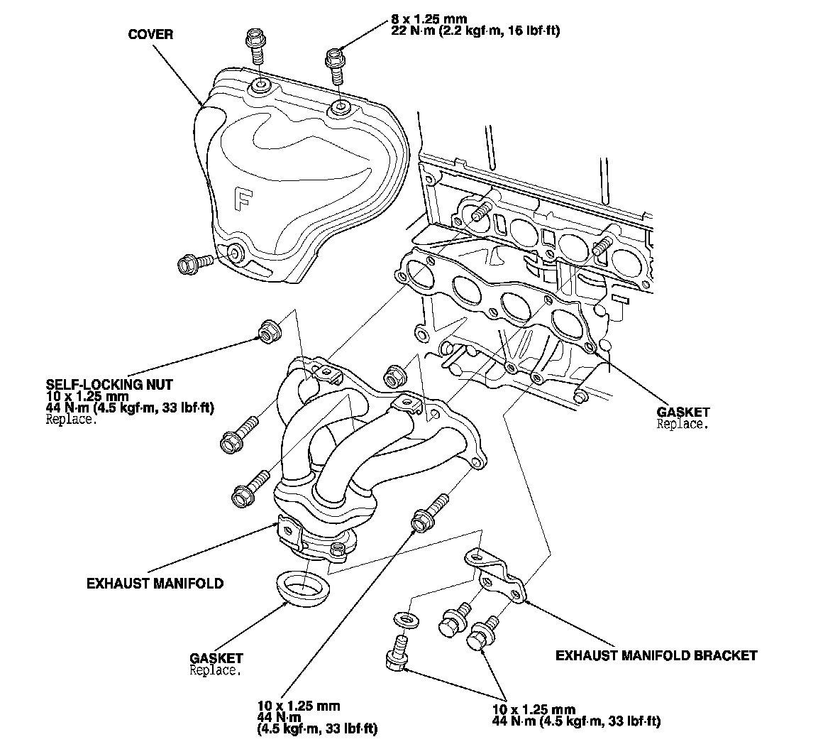 Tighten the 8 mm bolts 22 N-m (2.2 kgf-m, 16 lbf-ft).