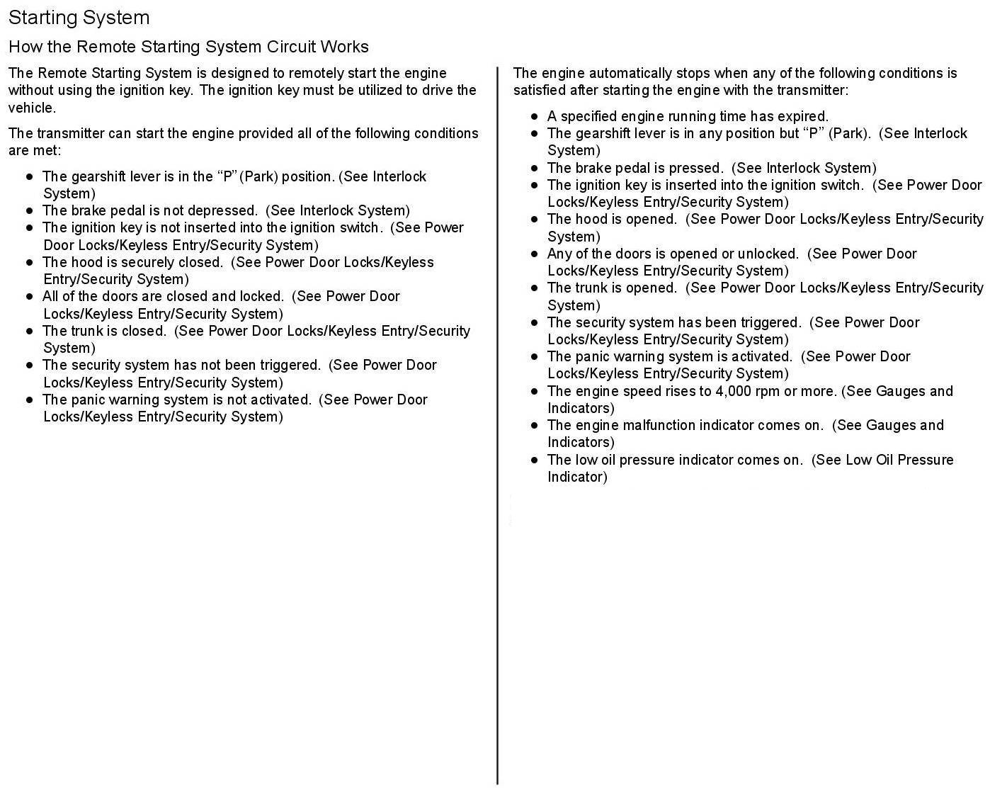 Starting System: Description and Operation