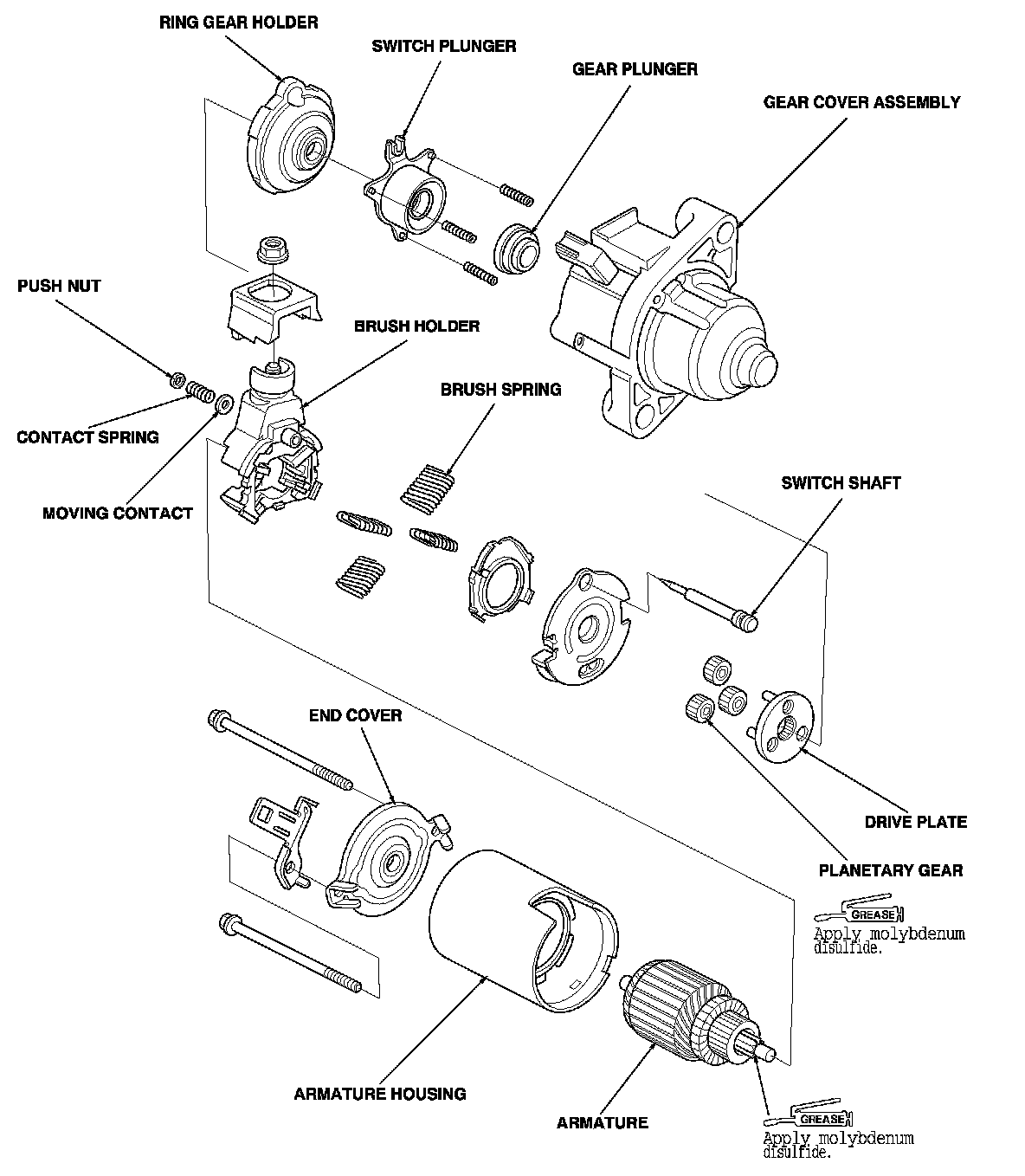 2. Disassemble the starter as shown in the Exploded View of this procedure.