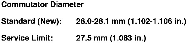 5. Check the commutator diameter. If the diameter is below the service limit, replace the armature.