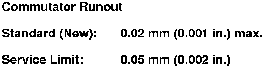 - If the commutator runout is within the service limit, check the commutator for carbon dust or brass chips between the segments.