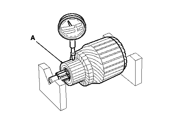 6. Measure the commutator (A) runout.