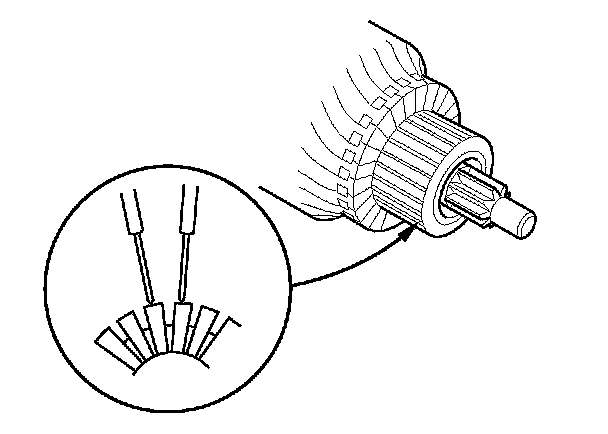 8. Check for continuity between the segments of the commutator. If there is an open circuit between any of the segments, replace the armature.