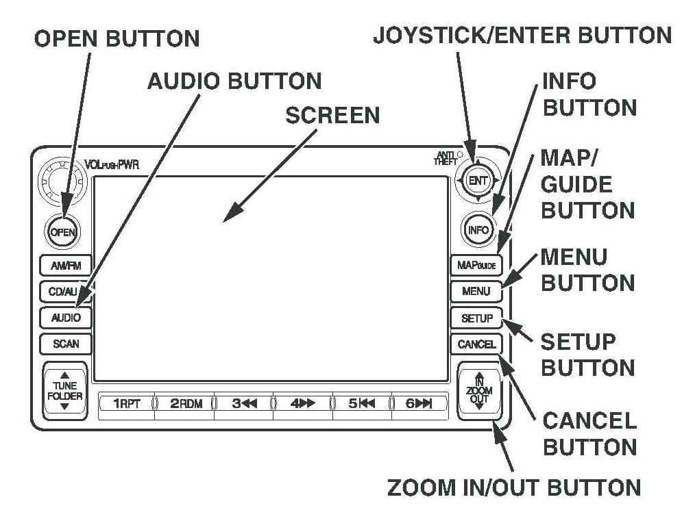 The buttons listed above are used in this bulletin. For more information on the button functions, see Getting Started in the navigation manual.