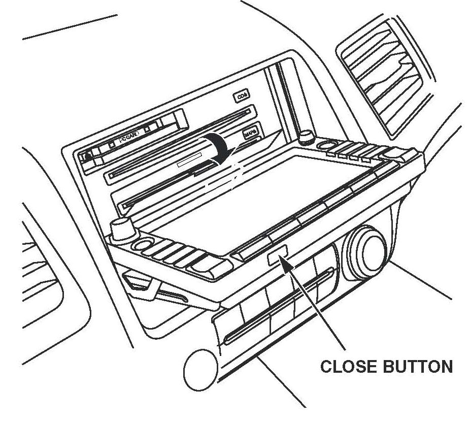 8. Press the CLOSE button. The screen tilts up and the navigation software loads automatically. This may take several minutes.