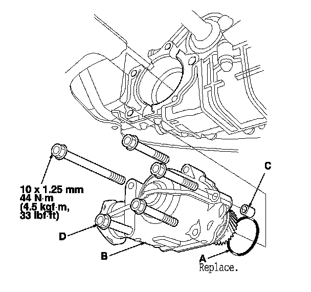 4. Install the one bolt (D) part-way in the rear lower of the transfer housing, and install the transfer assembly on the transmission.