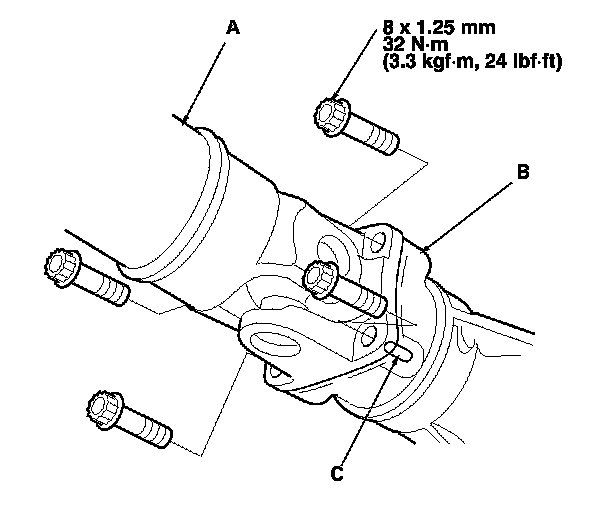 5. Install the propeller shaft (A) to the transfer companion flange (B) by aligning the reference mark (C).