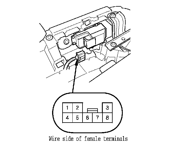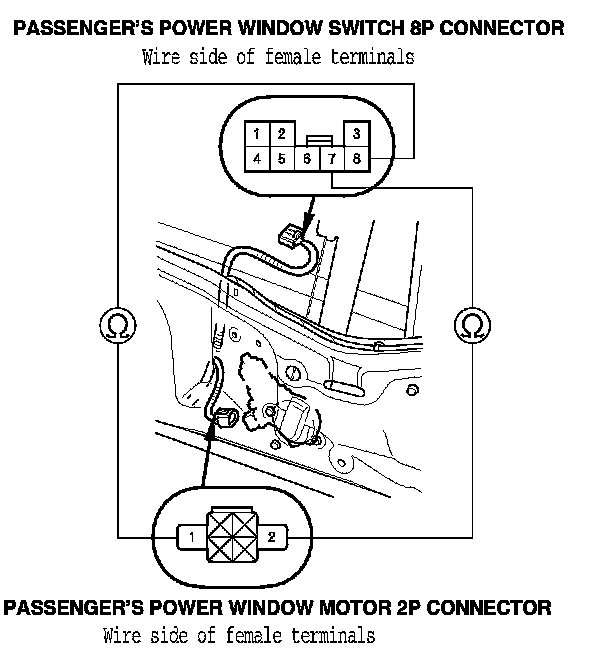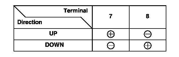 2. Test the motor in each direction by connecting battery power and ground to the passenger's power window switch 8P connector according to the table.