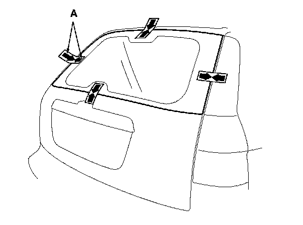 4. If the old rear window is to be reinstalled, make alignment marks (A) across the glass and the body with a grease pencil.