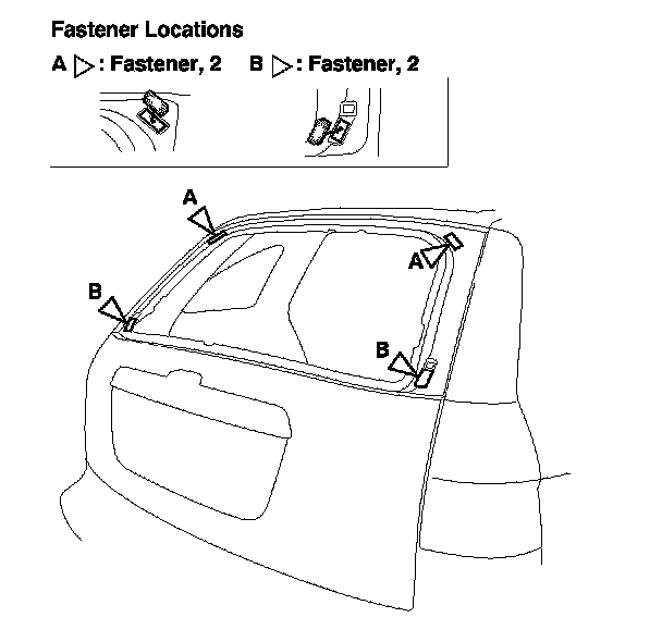 13. Attach the fasteners (A, B) with adhesive tape to the tailgate as shown.