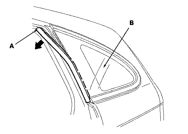 1. Remove the quarter pillar glass trim. Interior Trim Removal/Installation - Quarter Pillar Glass Trim