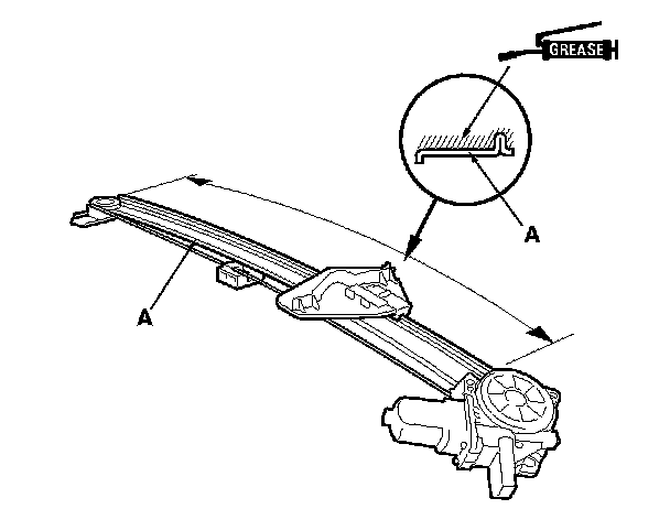 6. Apply multipurpose grease to all the sliding surfaces of the regulator (A) where shown.