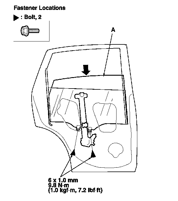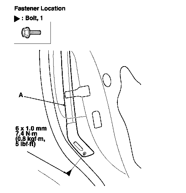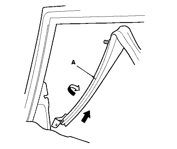 4. Remove the bolt from the lower end of the rear door lower channel (A).