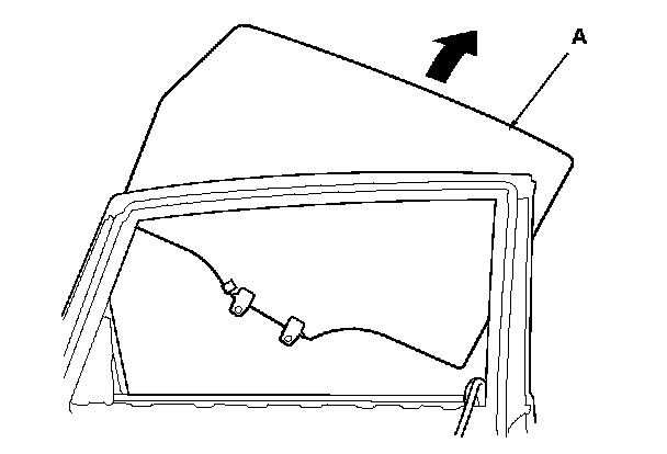6. Release the rear lower channel (A) from the glass by pulling the channel up.