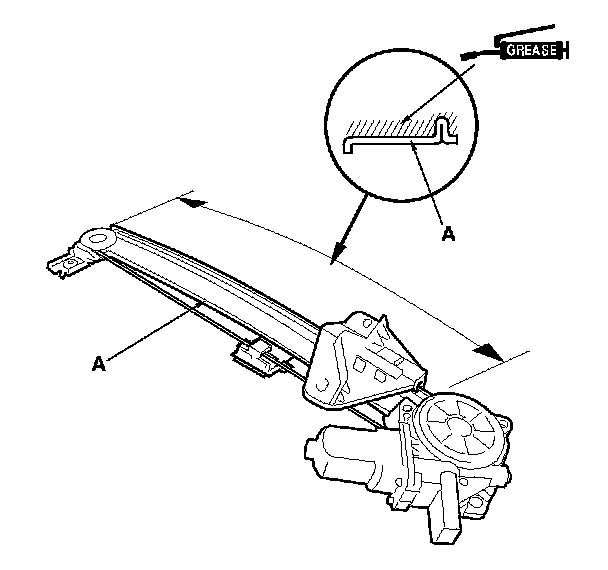 12. Apply multipurpose grease to all the sliding surfaces of the regulator (A) where shown.