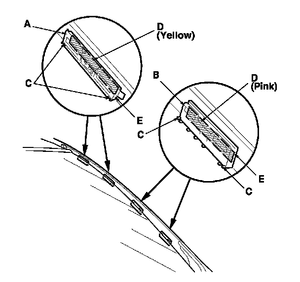 -2 Line up the retainers with the alignment marks (C) on the body, and attach the retainers with adhesive tape (D) (3M 9259, or equivalent).