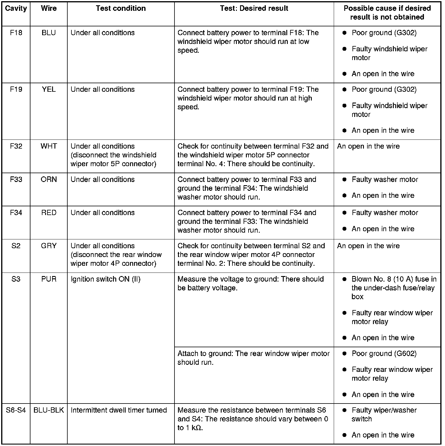 6. Reconnect the connectors to the under-dash fuse/relay box, turn the ignition switch to ON (II), and do these input tests at the following connectors.