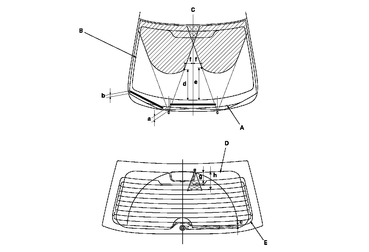 2. When you turn on the washer(s), confirm 50 % or more of the washer fluid lands within the spray area. If the spray area is not within the standard positions, adjust the nozzle(s).