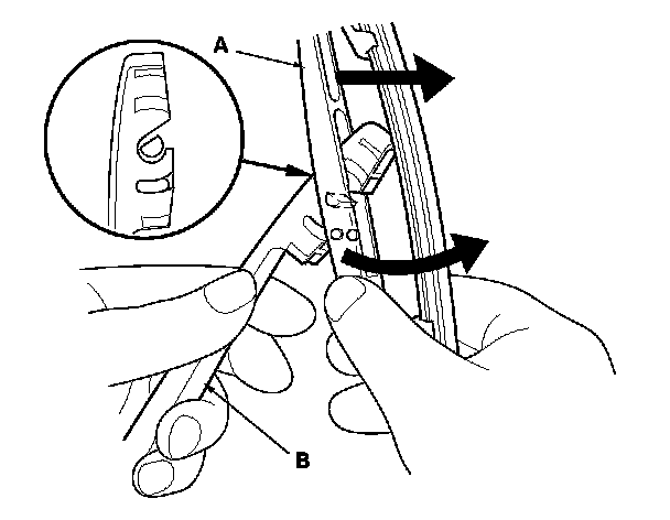 2. Turn the blade (A) to release it from the wiper arm (B).