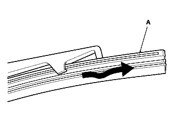 3. Pull back the end of the blade, and slide out the old rubber (A).