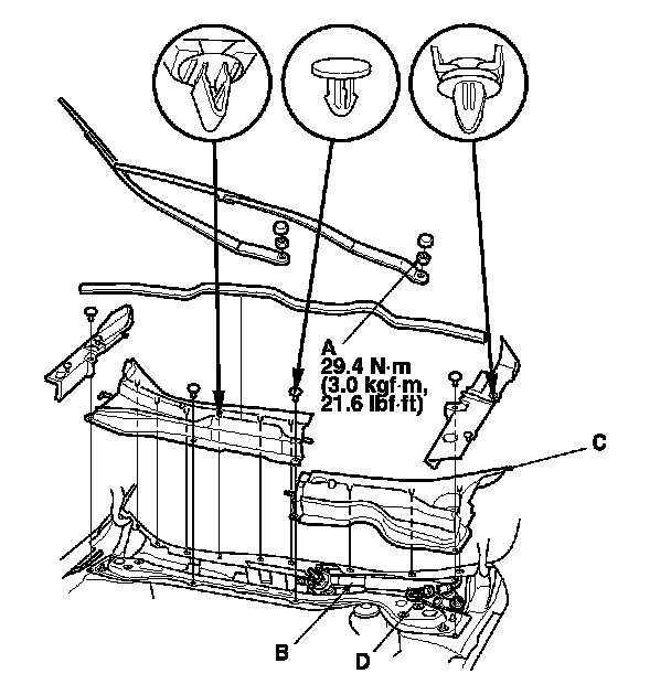 3. Disconnect the 5P connector (D) from the wiper motor.