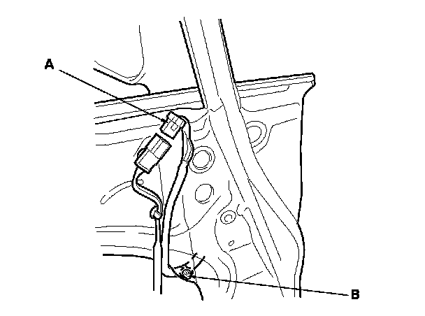 3. Disconnect the connector (A), and detach the harness clip (B).