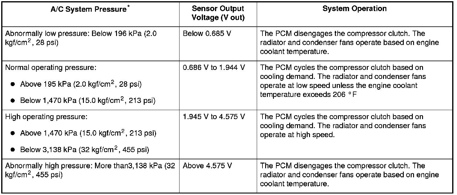 *: The A/C system pressure can be monitored in the HDS PGM-FI Data List
