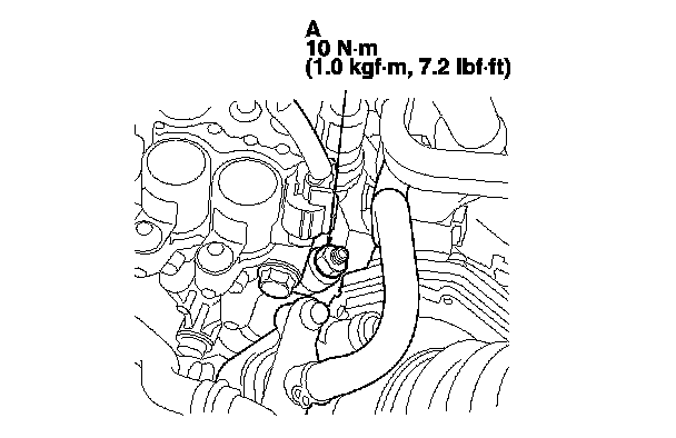 10. Pour Honda Long Life Antifreeze/Coolant Type 2 (P/N OL999-9001) into the radiator and the coolant reservoir, and tighten the bleed bolt as soon as coolant starts to run out in a steady stream.